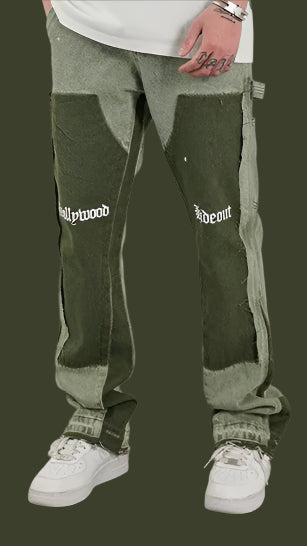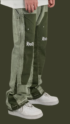 Make a bold statement with these heavy-washed flared jeans, featuring unique lumberjack-style splicing for that rugged retro vibe. The baggy fit and American high street influence bring a blend of throwback and modern edge—perfect for streetwear looks with serious attitude.